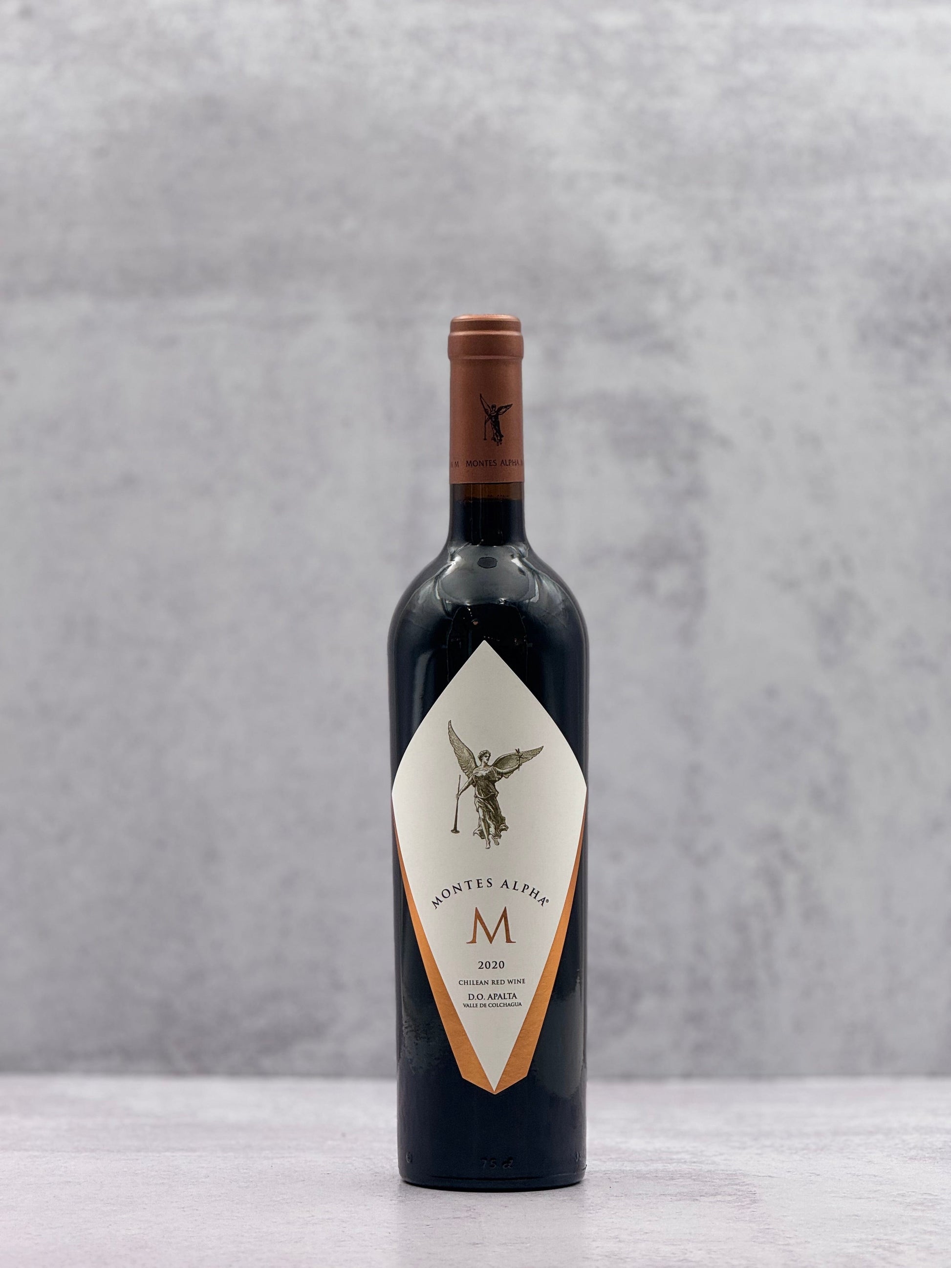 The 2020 Montes Alpha M is a Bordeaux-style blend from Chile's Apalta Valley, composed of 80% Cabernet Sauvignon, 10% Cabernet Franc, 5% Merlot, and 5% Petit Verdot. It offers a complex nose of ripe red and black fruits, crème de cassis, tobacco, and leather, with spice aromas of red and black pepper mingling with cinnamon and dark chocolate notes; on the palate, it is smooth but structured, with silky tannins. Crafted by Viña Montes, a pioneering Chilean winery established in 1988, this wine is produced in extremely limited quantities and is only released when it meets the stringent quality standards set by head winemaker Aurelio Montes